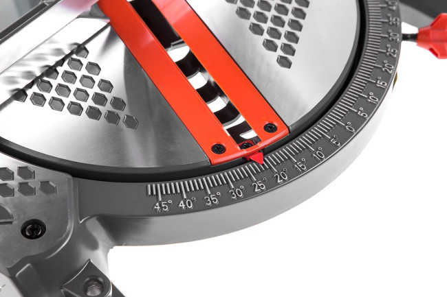 Стол поворачивается на 45 градусов влево и вправо. Удобно выполнять угловые пропилы.