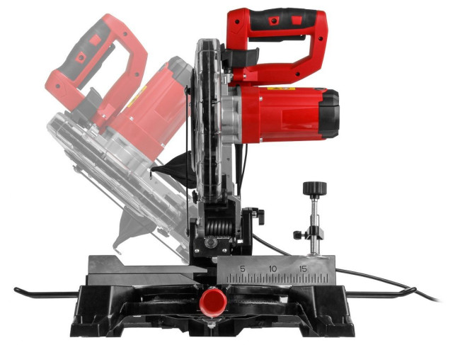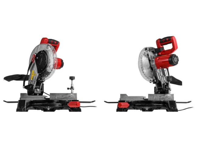 Пила сочетает в себе оптимальный набор функций для удобной и быстрой работы. Имеется система пылеудаления, лазерный указатель для более точного реза, система удобного зажима заготовки, точный рез. Быстрая регулировка глубины и ширины реза. Мощный 1500 Вт двигатель обеспечивает комфортную и продуктивную работу. А наличие ребер жесткости в основании придает дополнительную мощность конструкции, что очень важно для торцовочной пилы. Кроме того, пила оснащена удлинительными опорами для обработки длинных заготовок.