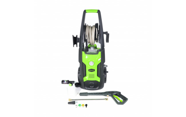 Комплектация Пистолет с трубкой удлинителем, набор насадок, ротационная насадка, встроенный бачок для моющего средства, пеногенератор, 7,6-метровый ПВХ-шланг ВД